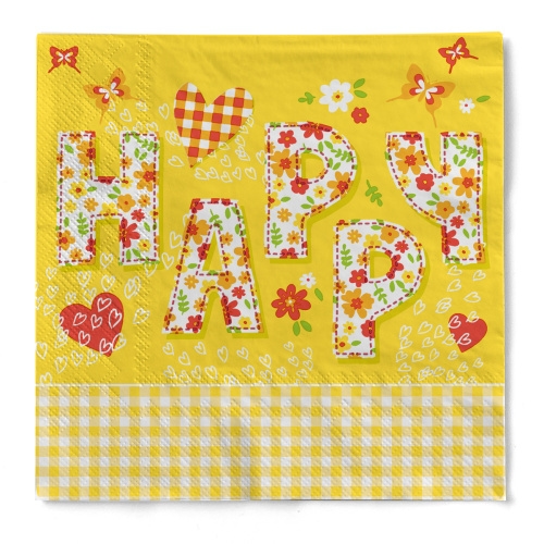 Serviette "Happy" in Gelb aus Tissue 33 x 33 cm, 20 Stück
