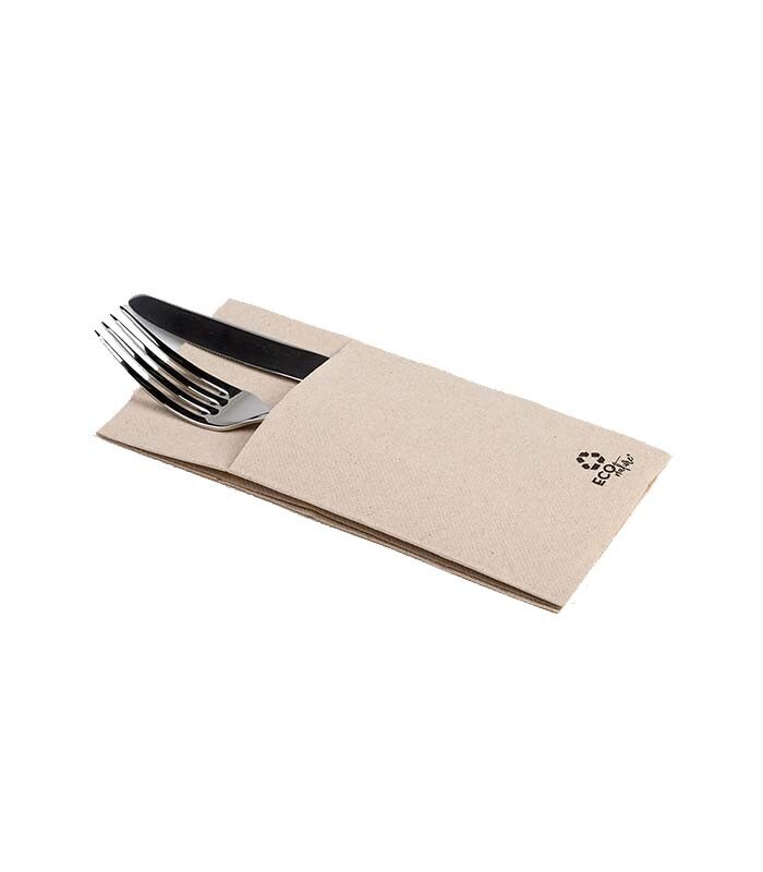 MONOUSO - Besteckset aus Kraftpapier Messer, Gabel, Löffel und Serviette (50 Stück)