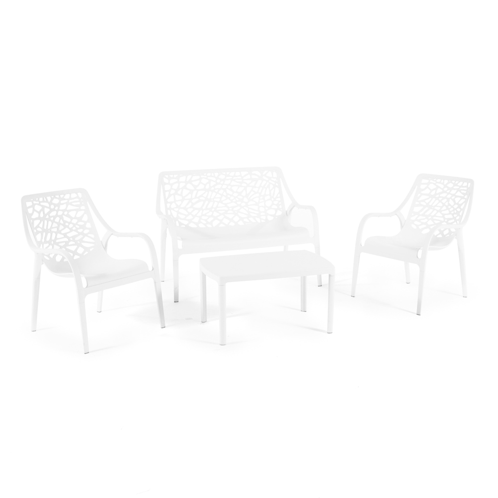 RATTATAN Gartenmöbel-Set für 4 Personen aus Polypropylen, 2-Sitzer-Sofa, 2 Sessel und Couchtisch, stapelbar und wasserfest – Maratea – Weiß