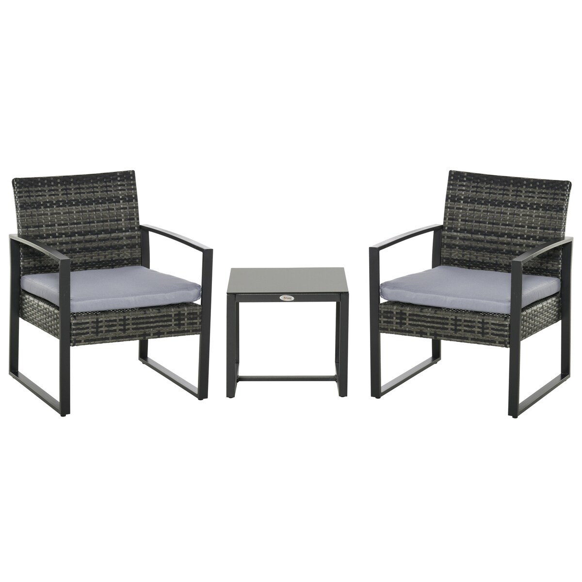 Merax Gartenmöbel Set 3-tlg mit 2 quadratische Sessel, Couchtisch & Kissen, Outdoor Balkonmöbel Set für 2 Personen, Rattan, Grau