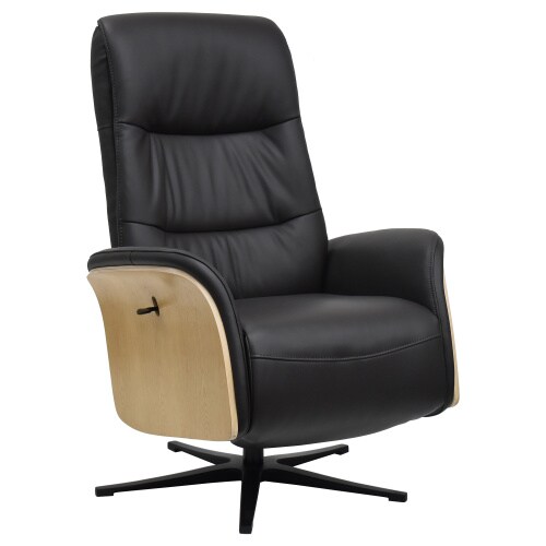 Raburg TV-Sessel. 360° drehbar, Relaxfunktion, Leder & Kunstleder in Schoko mit hellem Holz, verstellbares Kopfteil, Metallgestell | Louming Marces