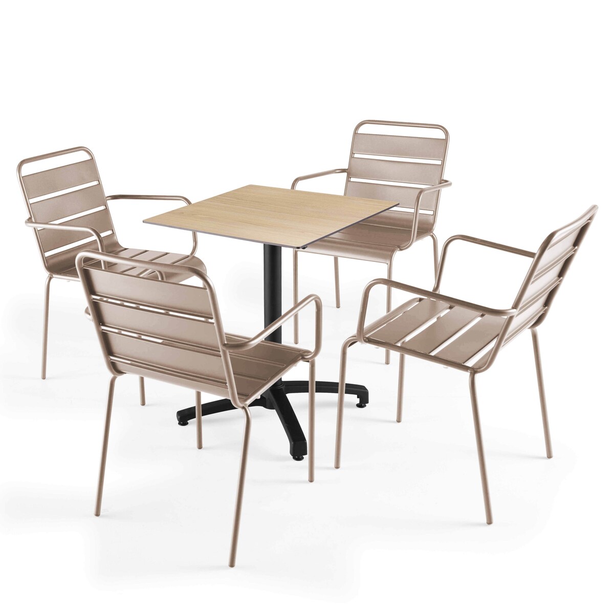 Oviala Business Terrassentisch aus Eichenlaminat und 4 taupefarbenen Sesseln - Oviala