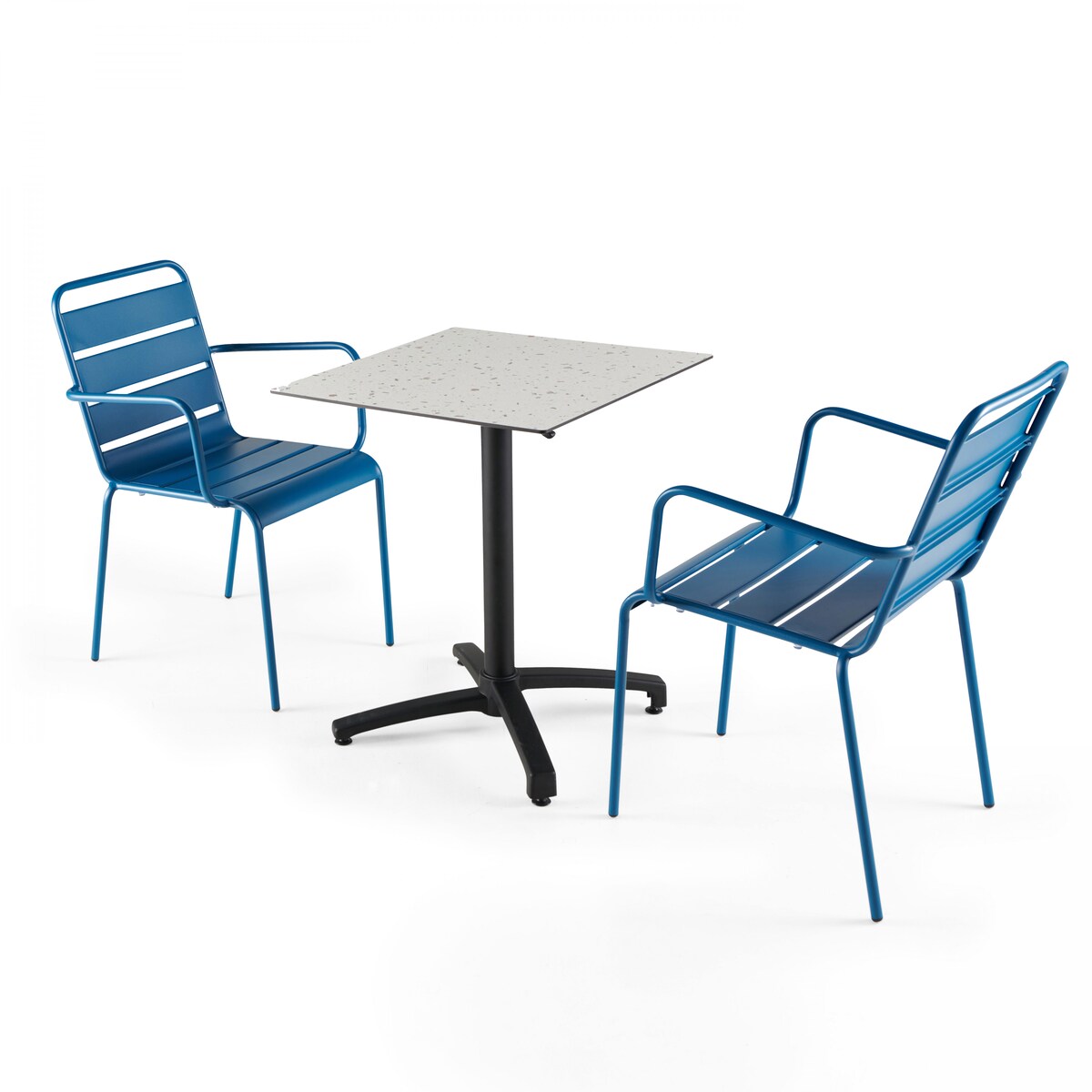 Oviala Business Terrazzo Laminat Gartentisch mit 2 pazifikblauen Sesseln - Oviala