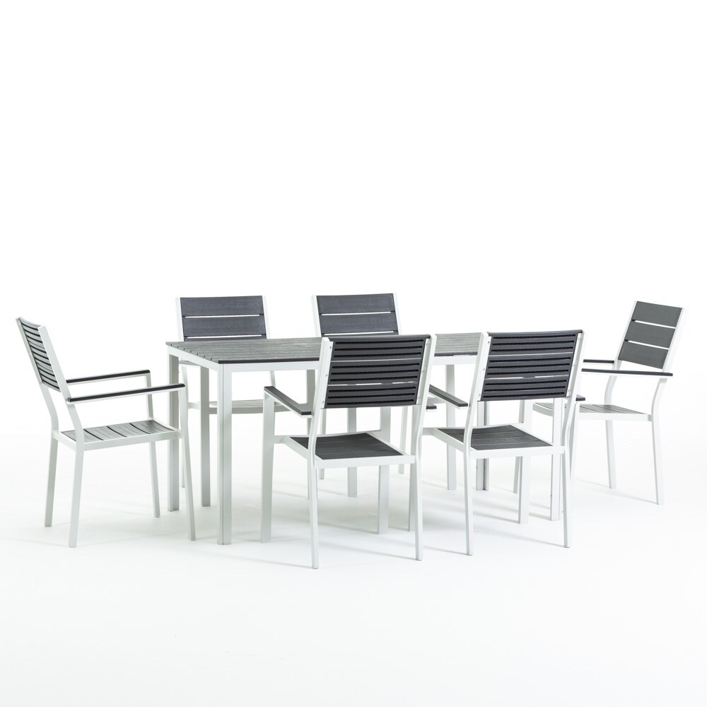 Inko 7-teilige Sitzgruppe Alu-Guss weiß Tisch 120x80x74 cm cm mit 6 Sesseln