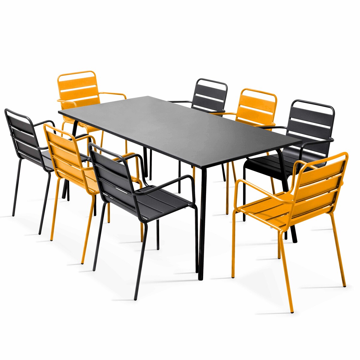 Oviala Business Set aus Gartentisch und 8 Sesseln aus gelbem und grauem Metall