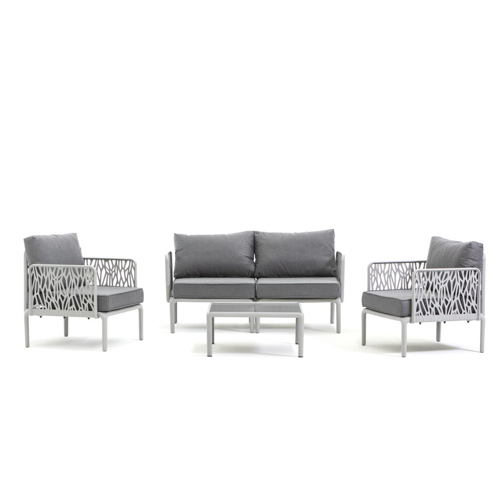 Caprera Set, Outdoor-Wohnzimmer bestehend aus 2-Sitzer-Sofa, 2 Sesseln und einem Couchtisch in taubengrau