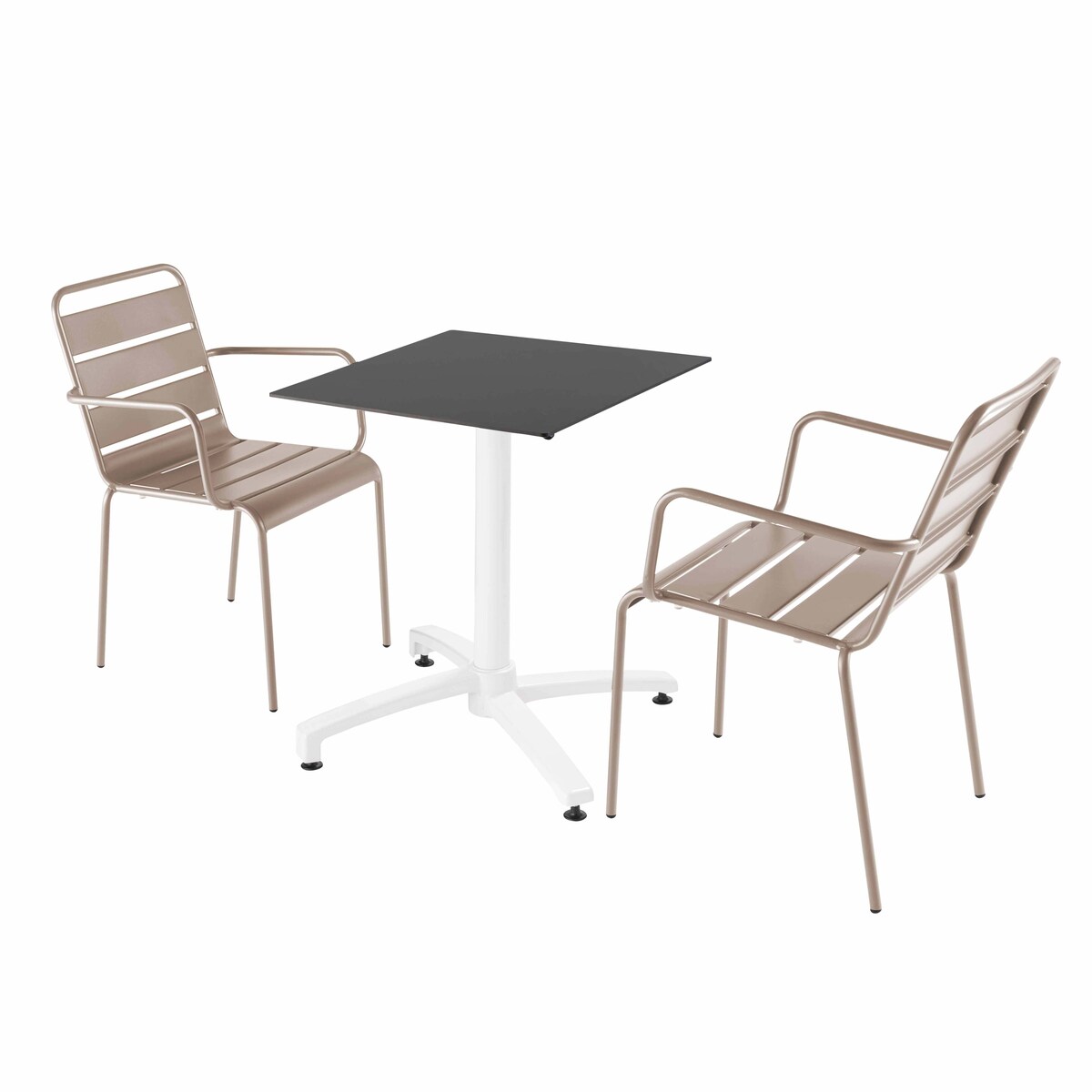 Oviala Business Set aus schwarzem Laminat-Terrassentisch und 2 taupefarbenen Sesseln