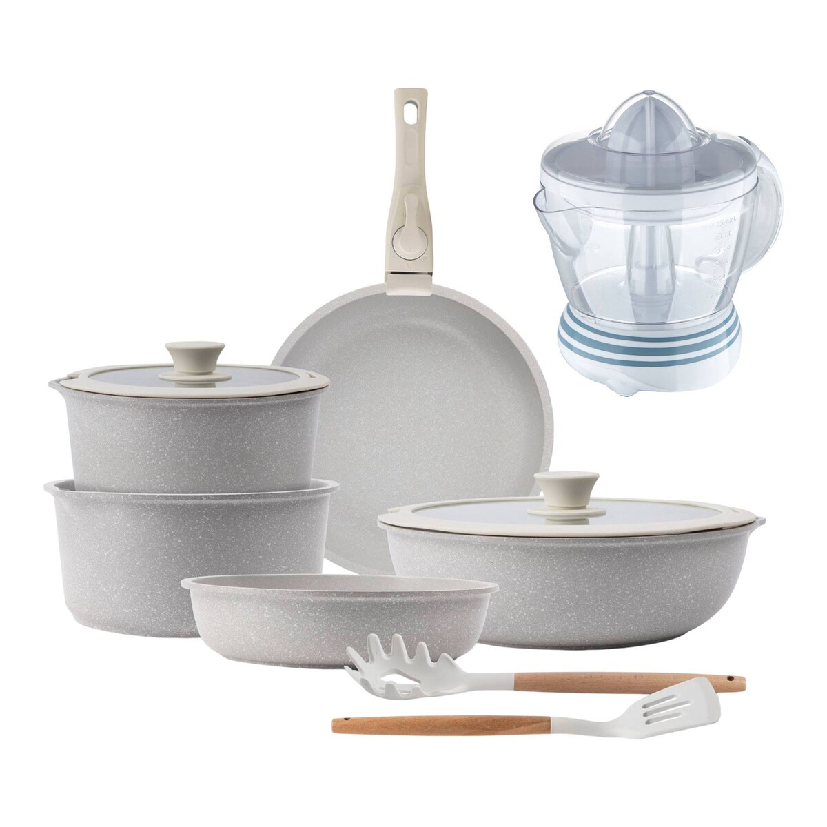BERGNER - 10-teiliges Kochgeschirr-Set aus Aluminiumguss mit Antihaftbeschichtung, abnehmbarem Griff und Entsafter, NATURALLY 40W 1,2L