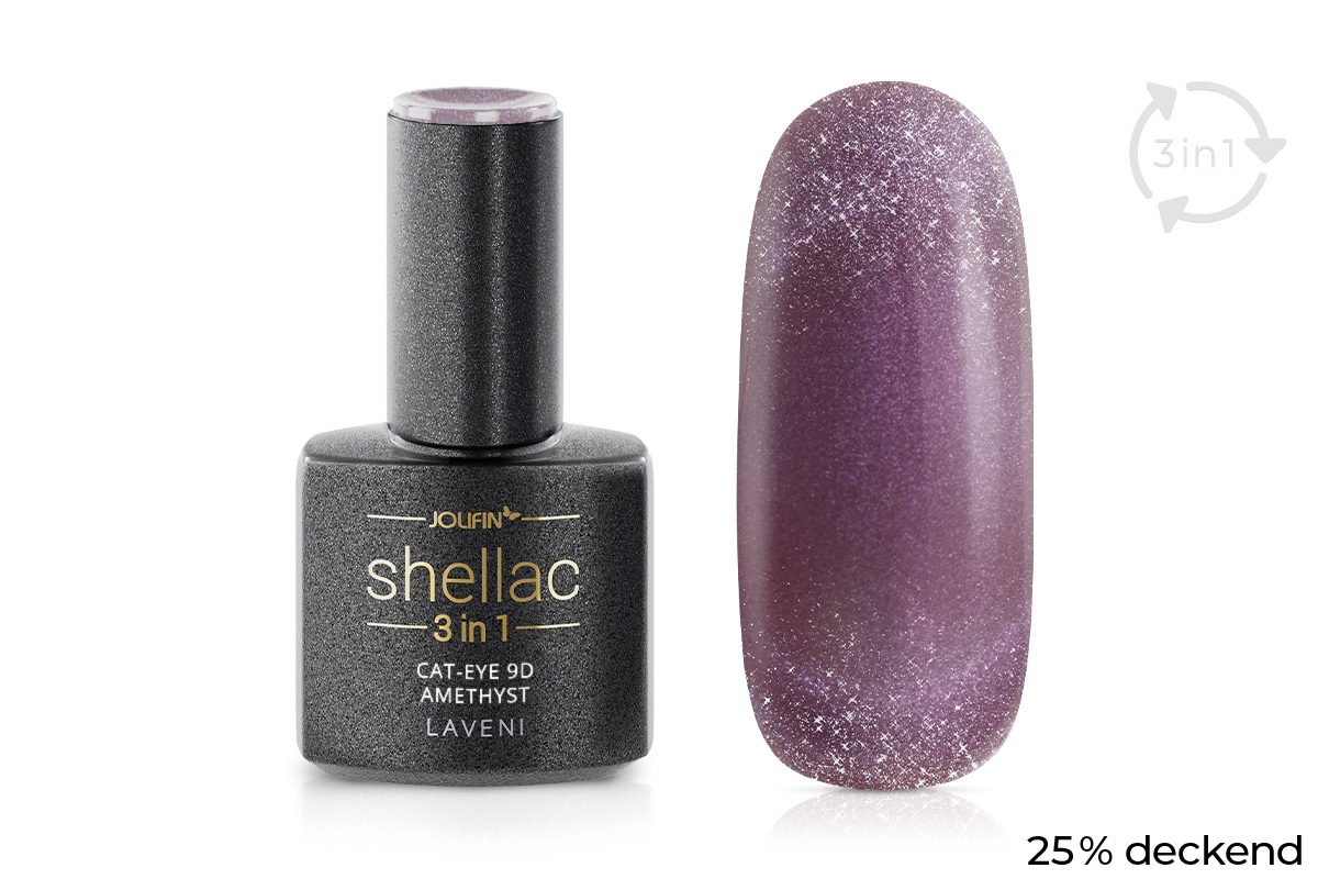 Jolifin LAVENI 3in1 Shellac - Cat-Eye 9D amethyst 10ml
