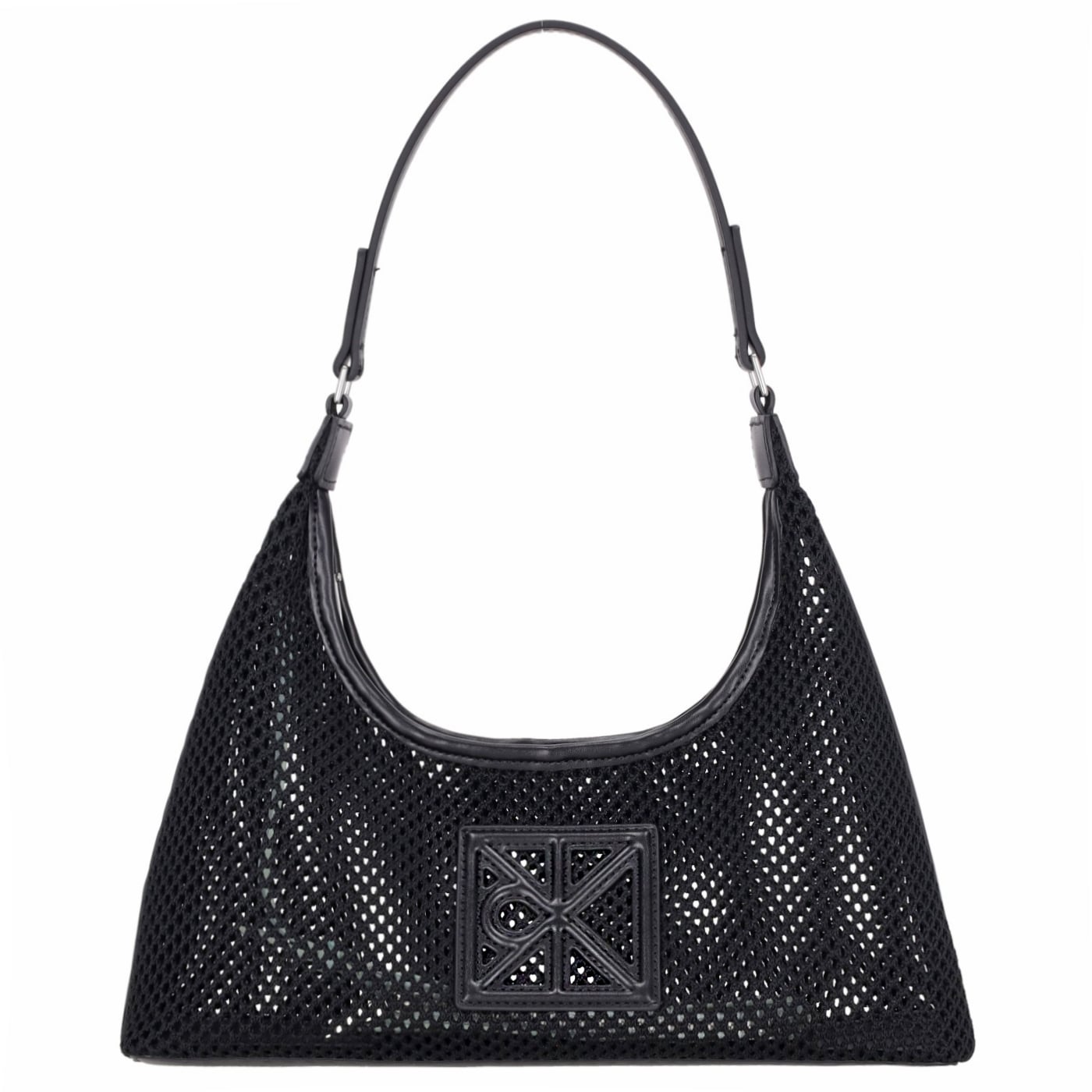 Calvin Klein Henkeltasche Emblem Mesh Shoulder Bag black, Damen Handtasche schwarz aus Polyester