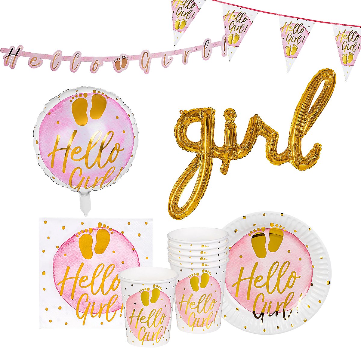 Set De Decoración Baby Shower Hello Girl 28 Piezas Para 6 Personas