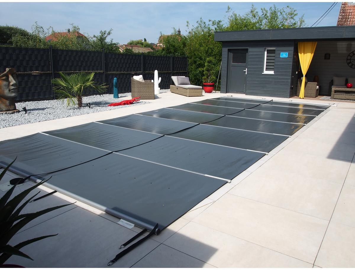 SafeDeluxe Poolplane Rollschutzabdeckung aus LKW Plane ohne Stangen (3,5m x 8,5m, Grau RAL7037) Stangenabdeckung Sicherheitsabdeckung Poolabdeckung
