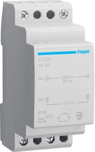 Hager ST320 Sicherheitstrafo 230V/12V 18VA 2PLE
