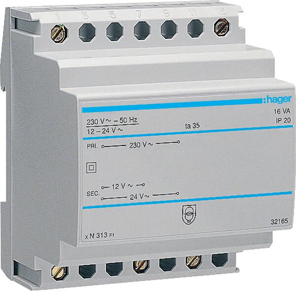 Hager Sicherheitstrafo 12V/1,33Ao.24V/0,67A ST313