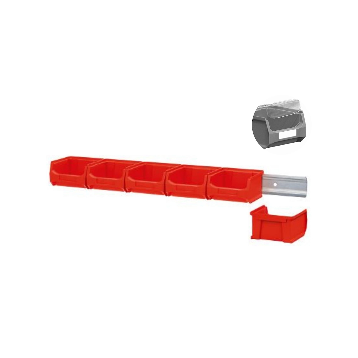 PROREGAL Wandleiste mit 6x Rote Sichtlagerbox 1.0 mit Abdeckung | HxBxT 6,1x60,5x10cm | Wandhalterung, Kleinteileaufbewahrung, Sortimentsboxhalterung