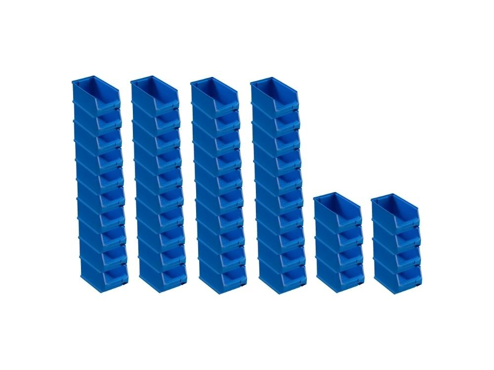 Trägersystem Blaue Systemplatte mit 45x leitfähigen Sichtlagerboxen 2.0 | Maße HxB 50x100cm | Sichtlagerbox, Sichtlagerbehälter, Sichtlagerkasten