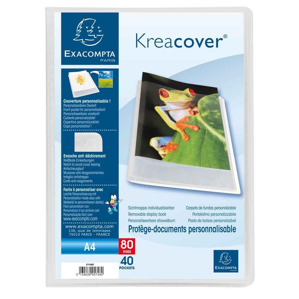Exacompta Sichtmappe aus festem PP 800μ mit 20 Hüllen Kreacover, für Format DIN A4