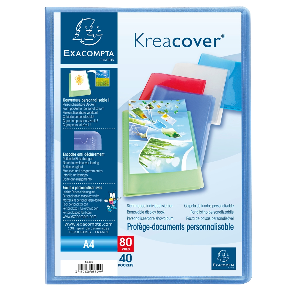 Exacompta Sichtmappe aus PP 500μ mit 40 Hüllen Kreacover Chromaline, für Format DIN A4
