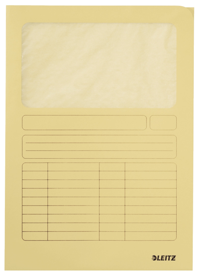 LEITZ Sichtmappe, A4, oben und rechte Seite offen, Karton, 100 Stück, gelb