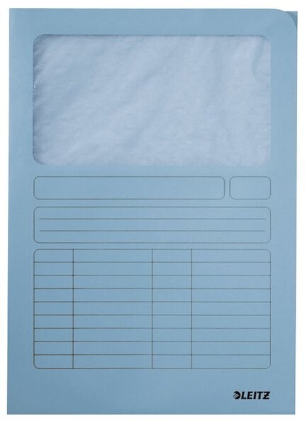 LEITZ Sichtmappe A4, hellblau, oben und rechts offen, Sichtfenster, Organisationsdruck, Karton: 160g
