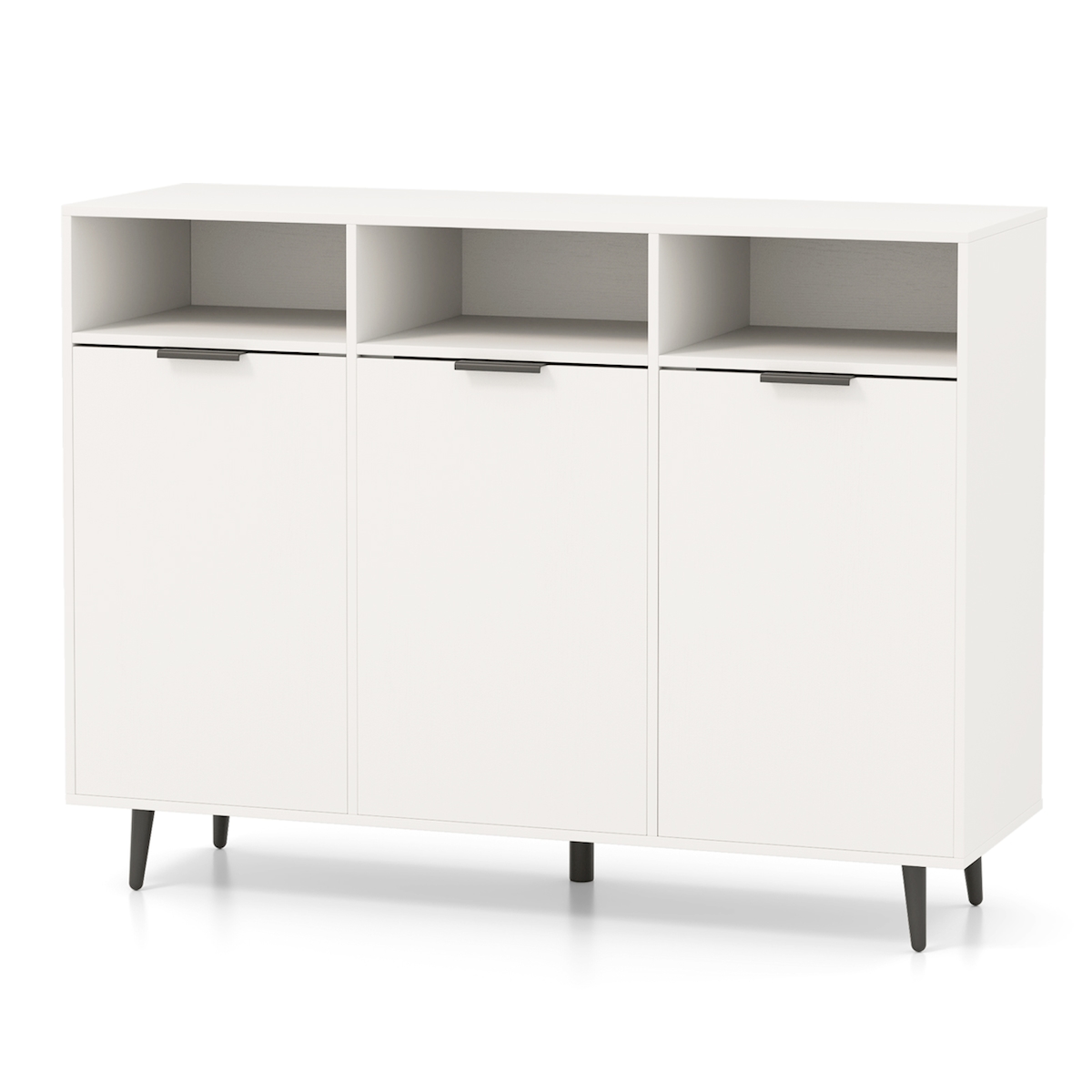 COSTWAY Holz-Sideboard, Aufbewahrungsschrank mit 3 offenen Fächern und Türen, 120 x 40 x 90 cm, weiß