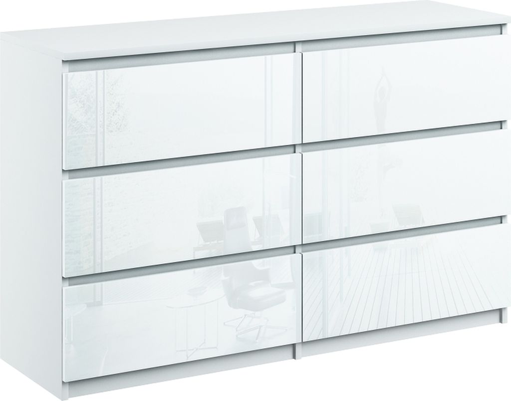 Kommode mit 6 Schubladen breite 120cm Sideboard moderne weiss hochglanz