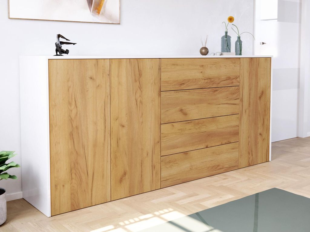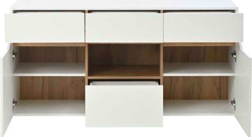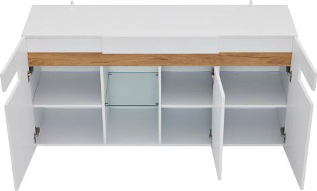 Sideboard stehend Karat A 140cm 2 Türen 4 Pushauszüge Weiß Hgl Eiche : Weiss hochglanz / Eiche Gold Varianten: Weiss hochglanz / Eiche Gold