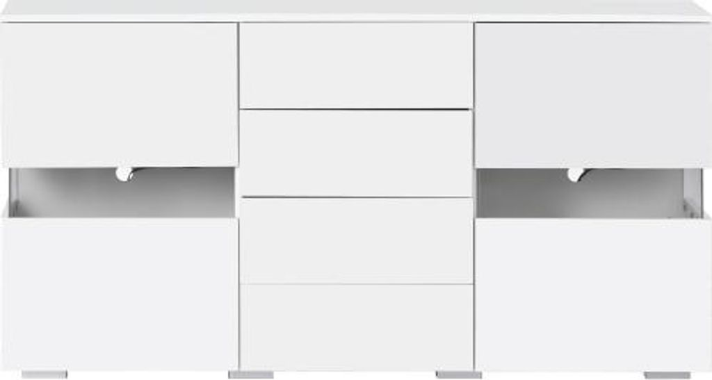 Kommode mit 4 Schubladen 2 Schränke 140cm Klamotenschrank Sideboard weiss hochglanz