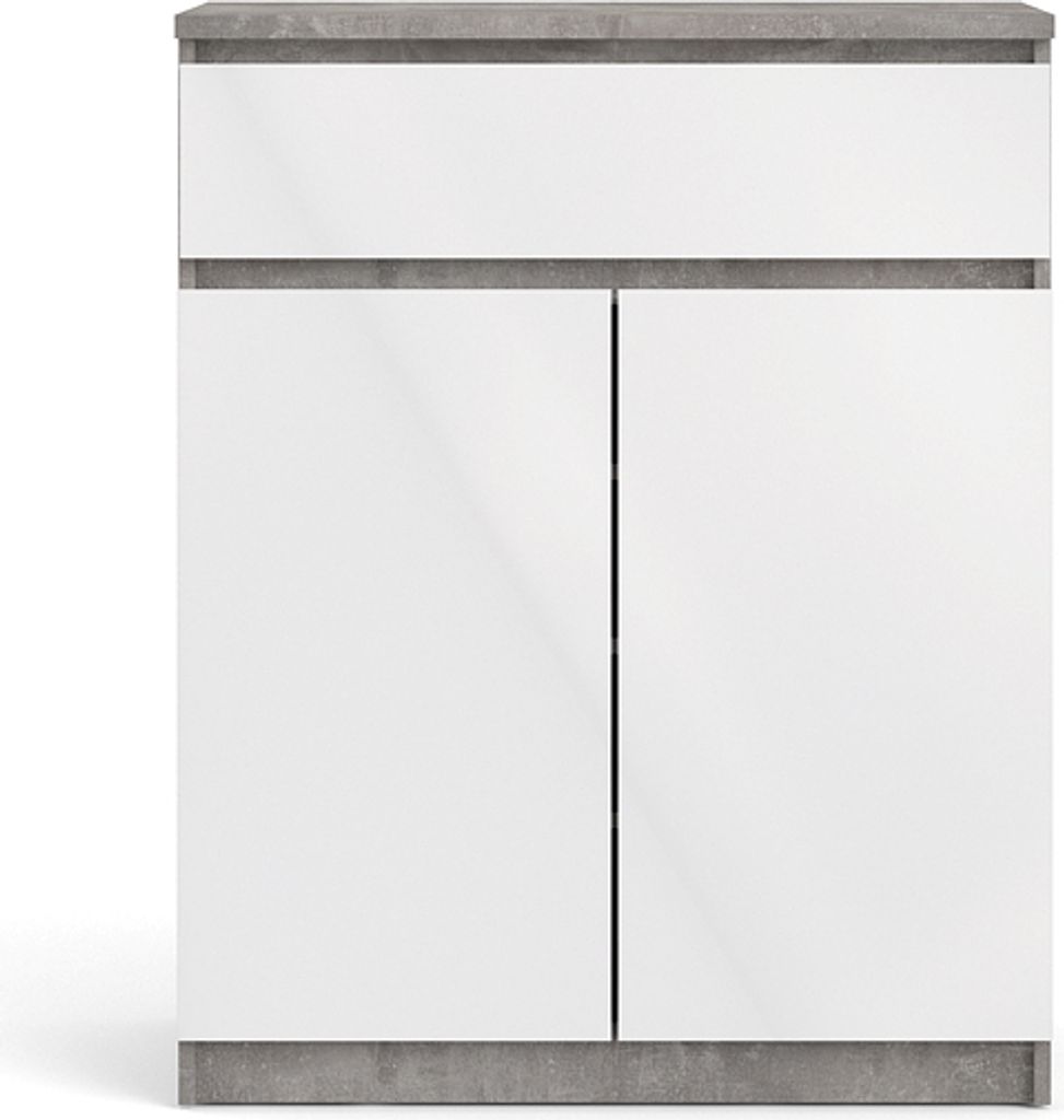 Nada Sideboard 2 Türen und 1 Schublade, beton Nachbildung,weiss hochglanz.