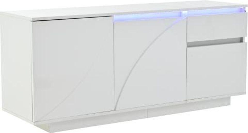 Vitrine Sideboard 145x35x72 cm Hochglanz Weiss Mit LED Lagerung Schrank Esszimmer Wohnzimmer