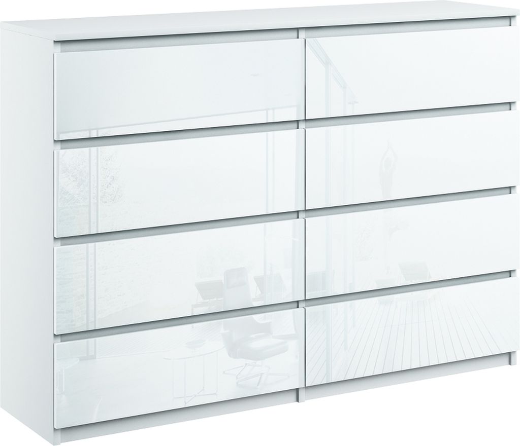 Kommode mit 8 Schubladen breite 140cm Sideboard moderne weiss hochglanz