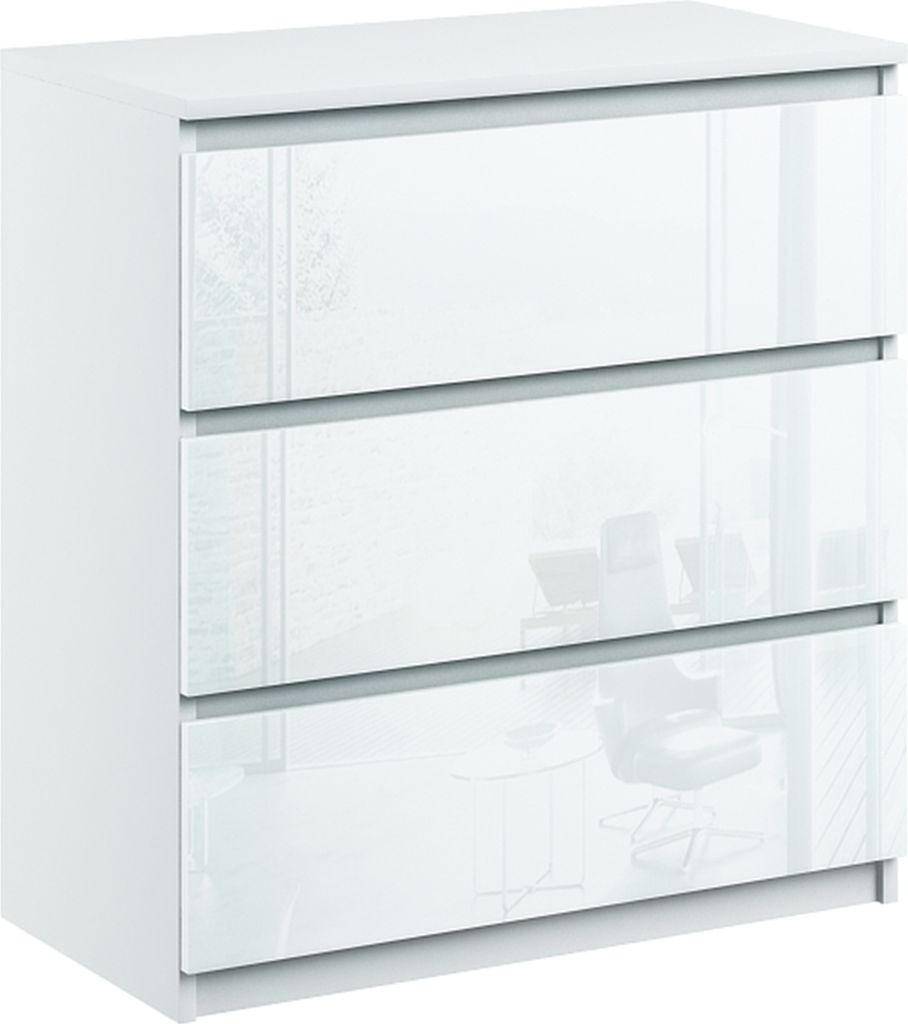 Kommode mit 3 Schubladen Sideboard Moderne weiss hochglanz
