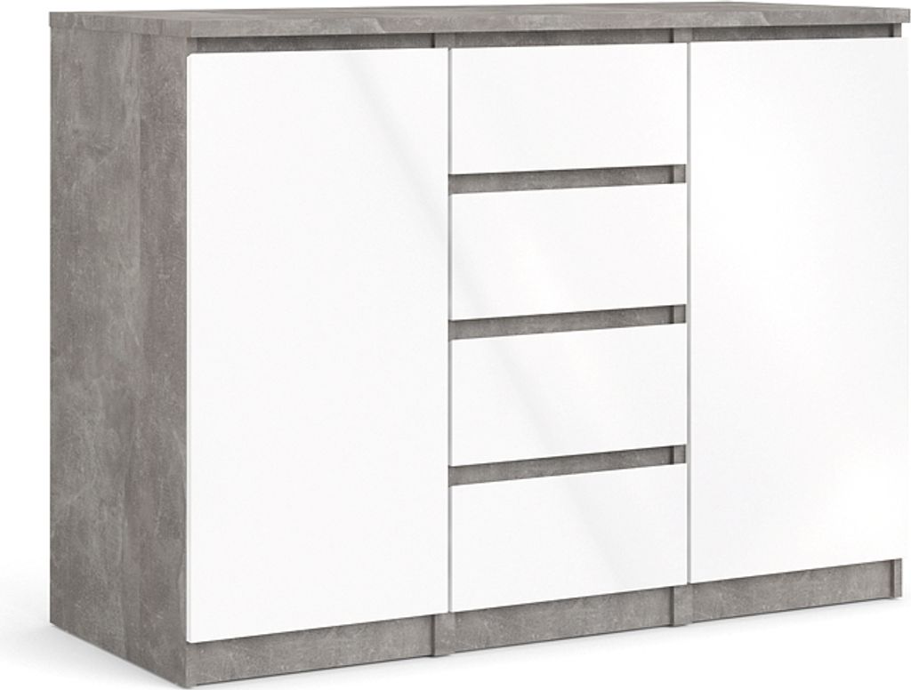 Nada Sideboard 2 Türen und 4 Schubladen, beton Nachbildung,weiss hochglanz.