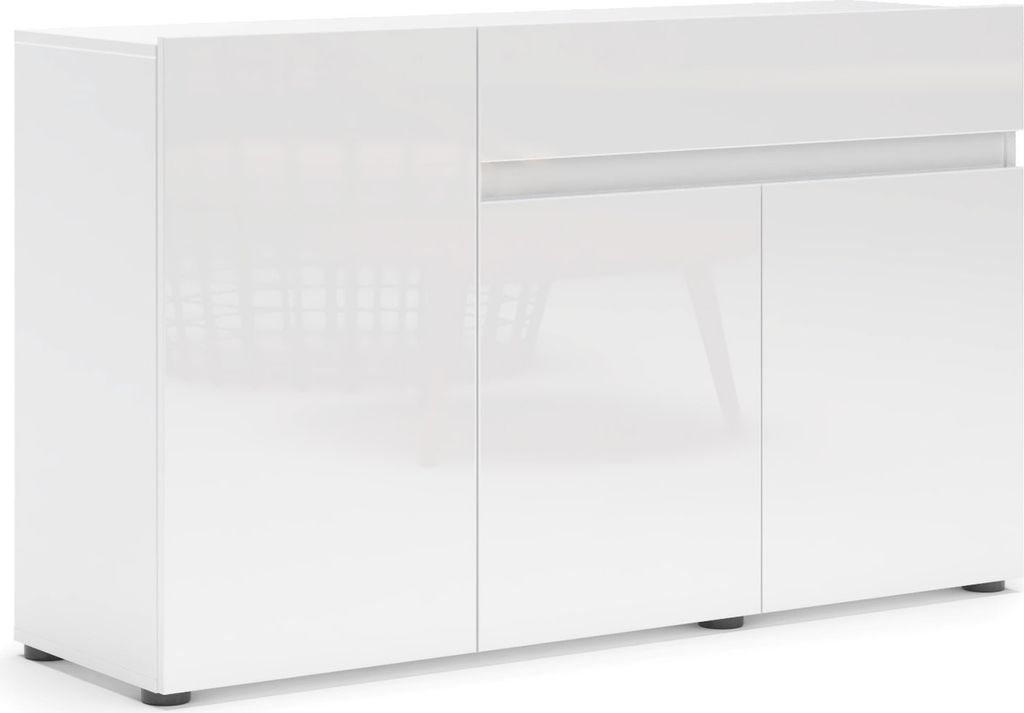 Wohnzimmerschrank 140x40x65cm Mit 3 Schubladen 2 Tueren Hochglanz Beistellschrank LED Sideboard Stauraum Fuer Flur Wohnzimmer Buero Weiss Kommode
