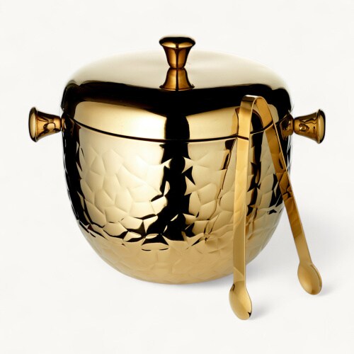 Eiseimer Rico (Höhe 21 cm), inkl. Deckel, Sieb und Eiszange, Gold-Optik, gemustert, Edelstahl, hochglanzpoliert