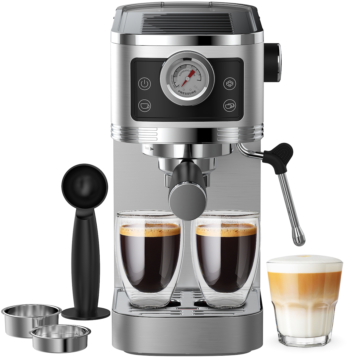 Kompakte Espressomaschine 20 Bar – Siebträger Kaffeemaschine mit Milchschaumdüse, Thermoblock & 1,3 L Wassertank für Cappuccino & Latte Macchiato
