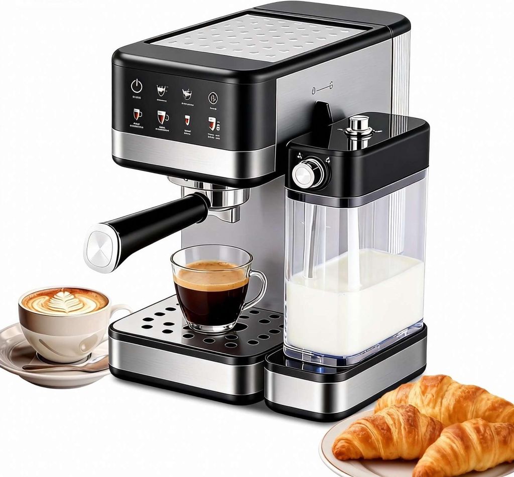 Zimilo Espressomaschine, 20 Bar, mit Milchsystem, Touchscreen, Siebträger-Kaffeemaschine, 1,2L Wassertank, 1L Milchbehälter, Kapsel und Pulver