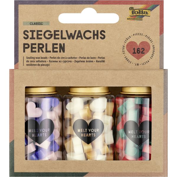folia Siegelwachs-Perlen PASTEL 3 Dosen farbig sortiert