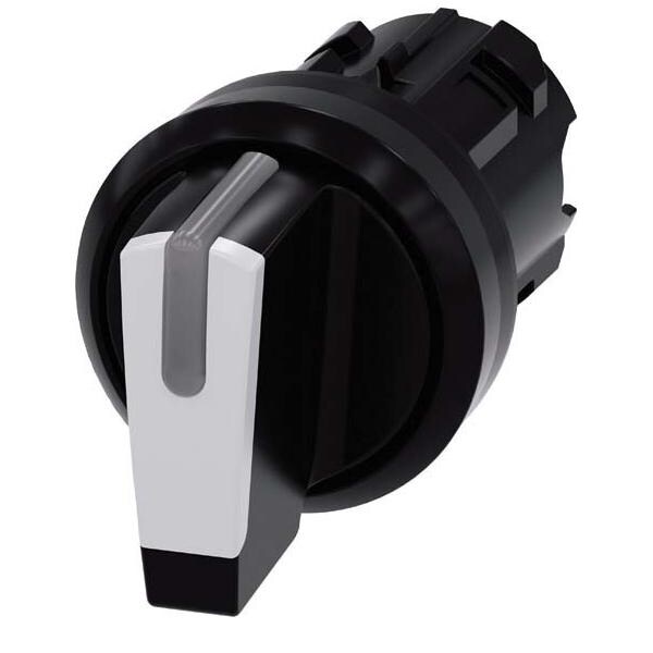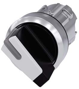 Siemens 3SU1100-2BM60-1NA0 Knebelschalter, beleuchtbar, 22 mm, rund, Kunststoff, weiß, Knebel, kurz, 3 Schaltstellungen, tastend, 10:30h/12h/13:30h, m