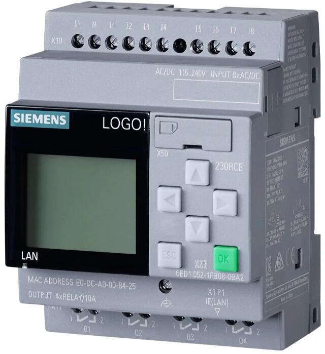 Siemens 6ED1052-1FB08-0BA2 LOGO! 230RCE, Logikmodul, Display SV/E/A: 115V/230V/Relais, 8 DE/4 DA, SP. 400 Blöcke, modular erweiterbar, Ethernet, integ