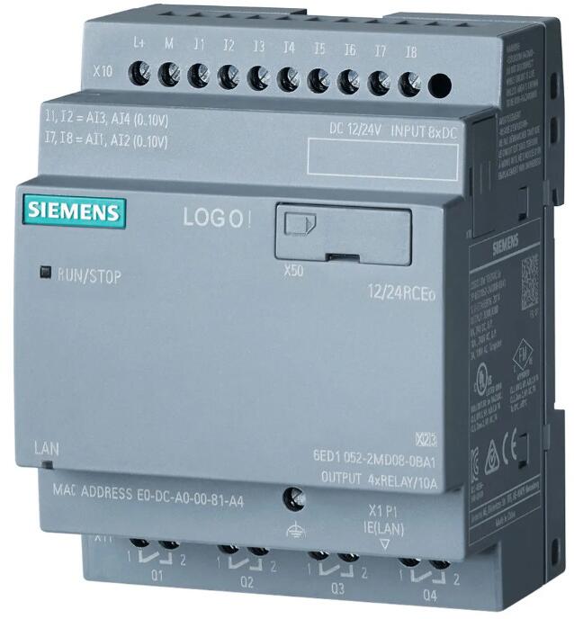 Siemens 6ED1052-1HB08-0BA2 LOGO! 24RCE, Logikmodul,Display SV/E/A: 24V AC/DC 24V/Relais, 8 DE/4 DA, SP. 400 Blöcke, modular erweiterbar, Ethernet, int