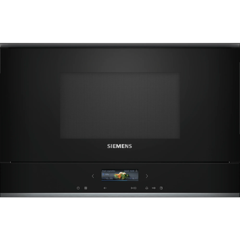 Siemens BF722L1B1 iQ700 Einbau-Mikrowelle 21 Liter 59,4cm breit 900 Watt TFT Touchdisplay 5 Leistungsstufen 7 Automatikprogramme QuickStart schwarz
