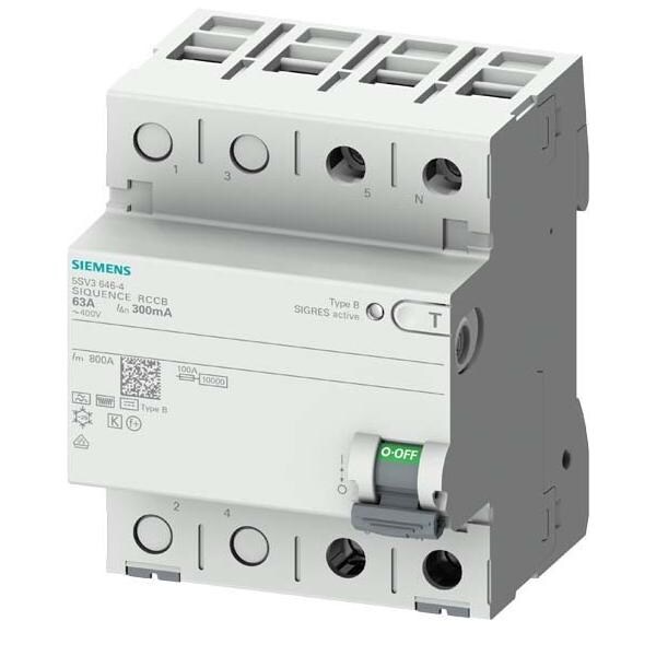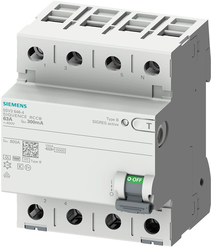 Siemens 5SV3646-4KK14 FI-Schutzschalter, 4-polig, Typ B+, kurzzeitverzögert, 63A, 300mA, 400V