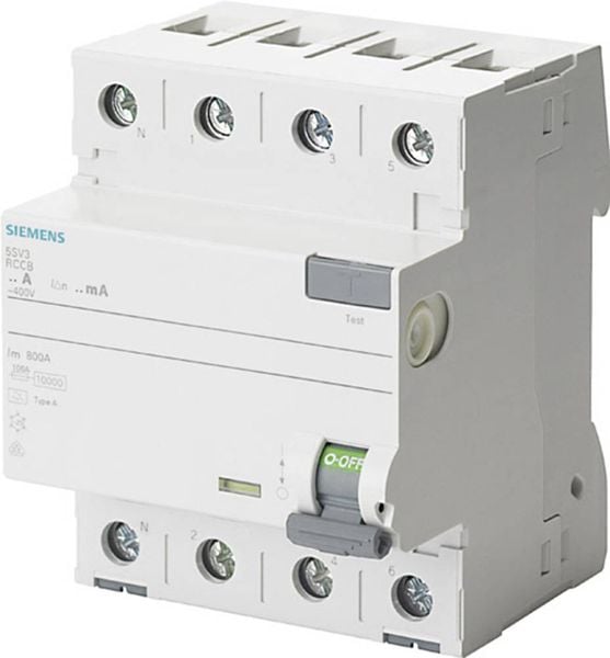 Siemens 5SV34466 FI-Schutzschalter, 4-polig, Typ A, 63A, 100mA, 400 V