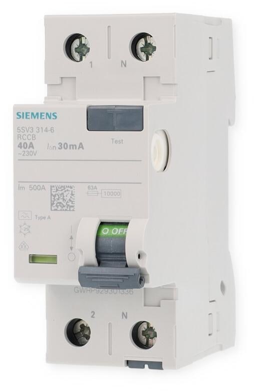 Siemens 5SV3314-6 FI-Schutzschalter, 2-polig, Typ A, 40A, 30mA, 230 V