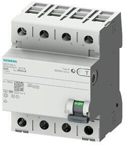 Siemens 5SV3644-4 FI-Schutzschalter, 4-polig, Typ B, kurzzeitverzögert, 40A, 300mA, 400V