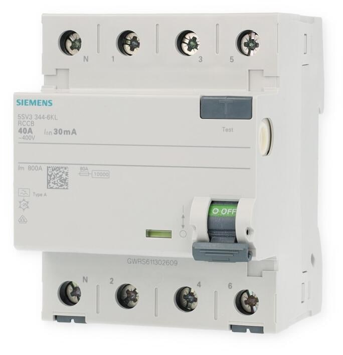 FI-Schutzschalter Siemens, 4-polig, Typ A, 40A, 30mA, 5SV3344-6