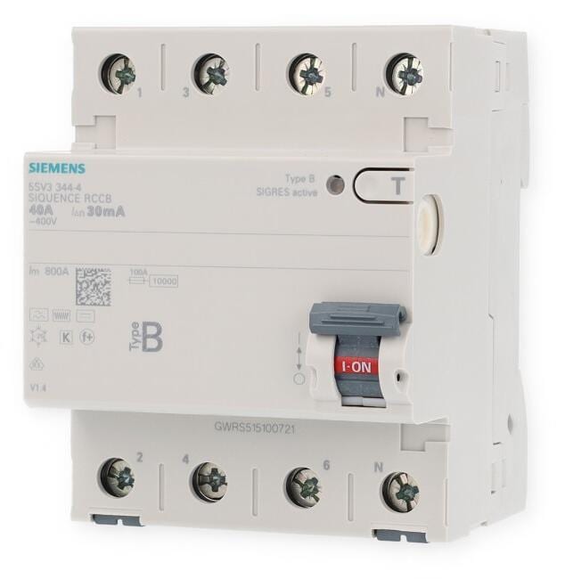 Siemens 5SV3344-4KK14 FI-Schutzschalter, 4-polig, Typ B+, kurzzeitverzögert, 40A, 30mA, 400V