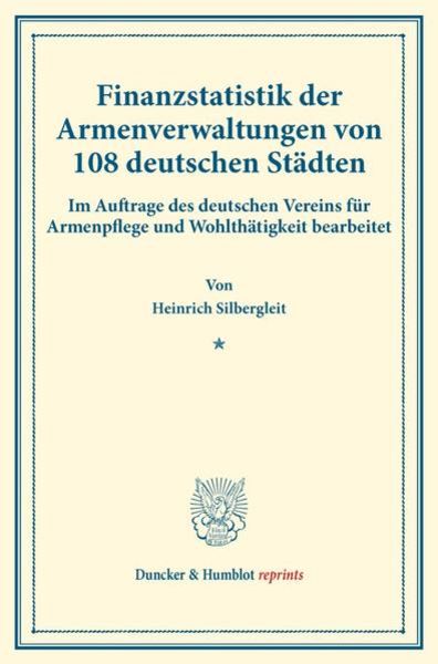 Finanzstatistik der Armenverwaltungen von 108 deutschen Städten., Taschenbuch von Heinrich Silbergleit, Duncker & Humblot, 9783428176052