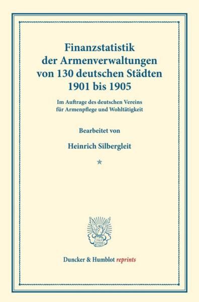 Finanzstatistik der Armenverwaltungen von 130 deutschen Städten 1901 bis 1905., Taschenbuch von Heinrich Silbergleit, Duncker & Humblot, 9783428176229